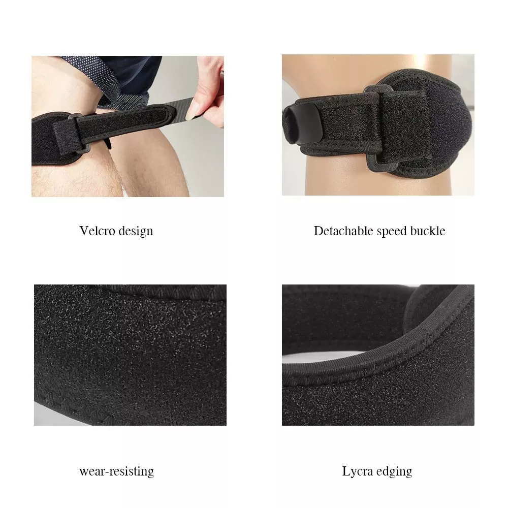 Nastaviteľná podpora neoprénovej kolennej ortézy podporuje rýchlejšie zotavenie podopretím vašich kĺbov a kĺbov. Popruh kolena Patella Chlena zmierňuje bolesť zo šľachy, artritídy, kolena jumperu, zlomenín stresu a slzy menisku. Používajú muži a ženy